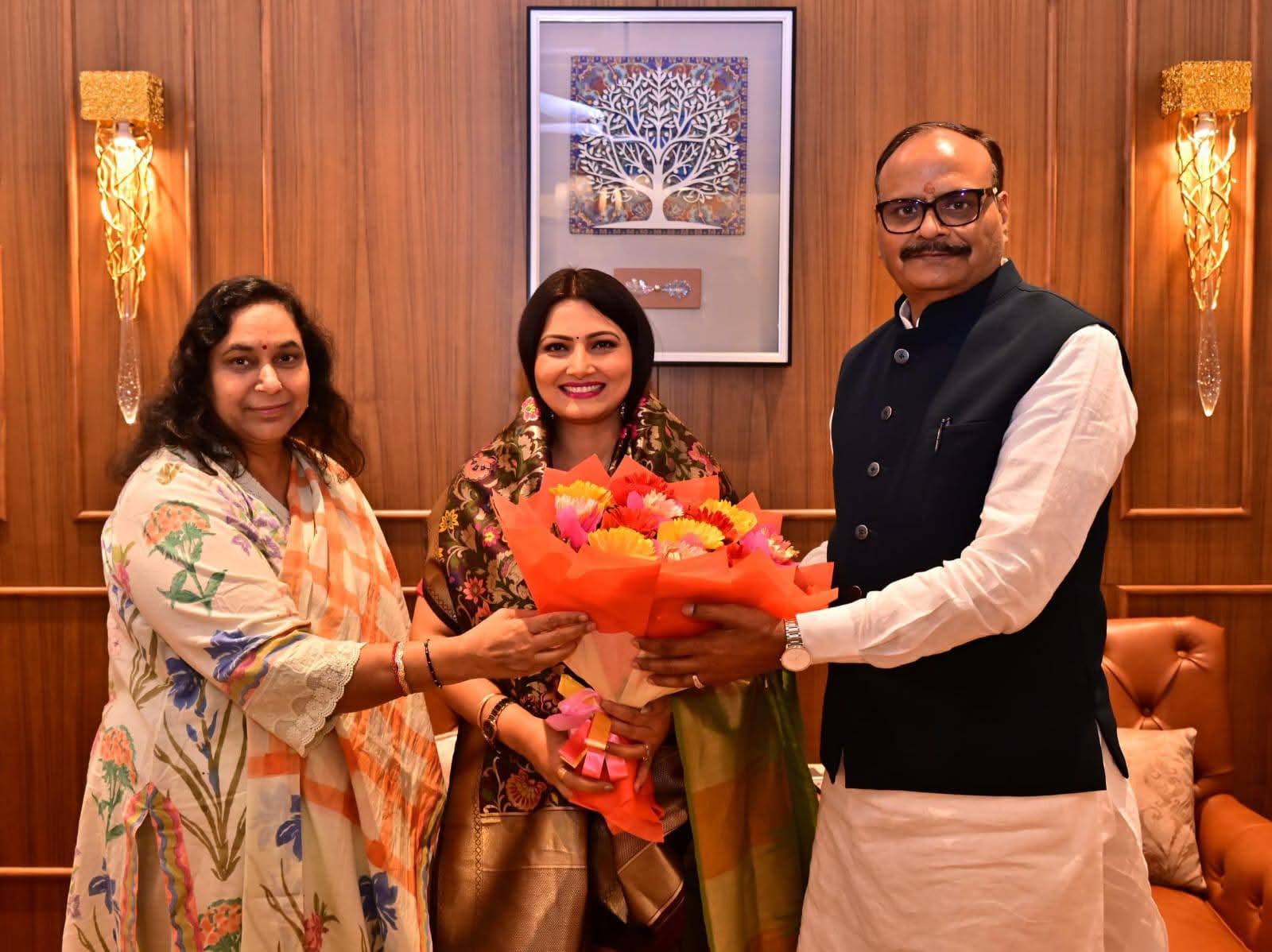 उपमुख्यमंत्री ब्रजेश पाठक ने अपने लखनऊ स्थित आवास पर चित्रा त्रिपाठी का गर्मजोशी से स्वागत किया। मुलाकात के दौरान डिप्टी सीएम ने उनका कुशलक्षेम जाना और विभिन्न समसामयिक मुद्दों पर चर्चा की। ब्रजेश पाठक ने इस भेंट की जानकारी साझा करते हुए इसे एक सुखद और सौहार्दपूर्ण मिलन बताया। दोनों के बीच हुई यह बातचीत पूरी तरह से शिष्टाचार और सद्भावना पर आधारित रही।