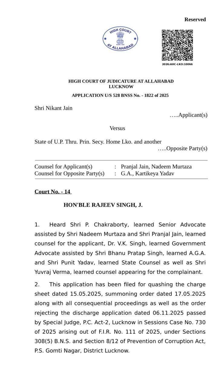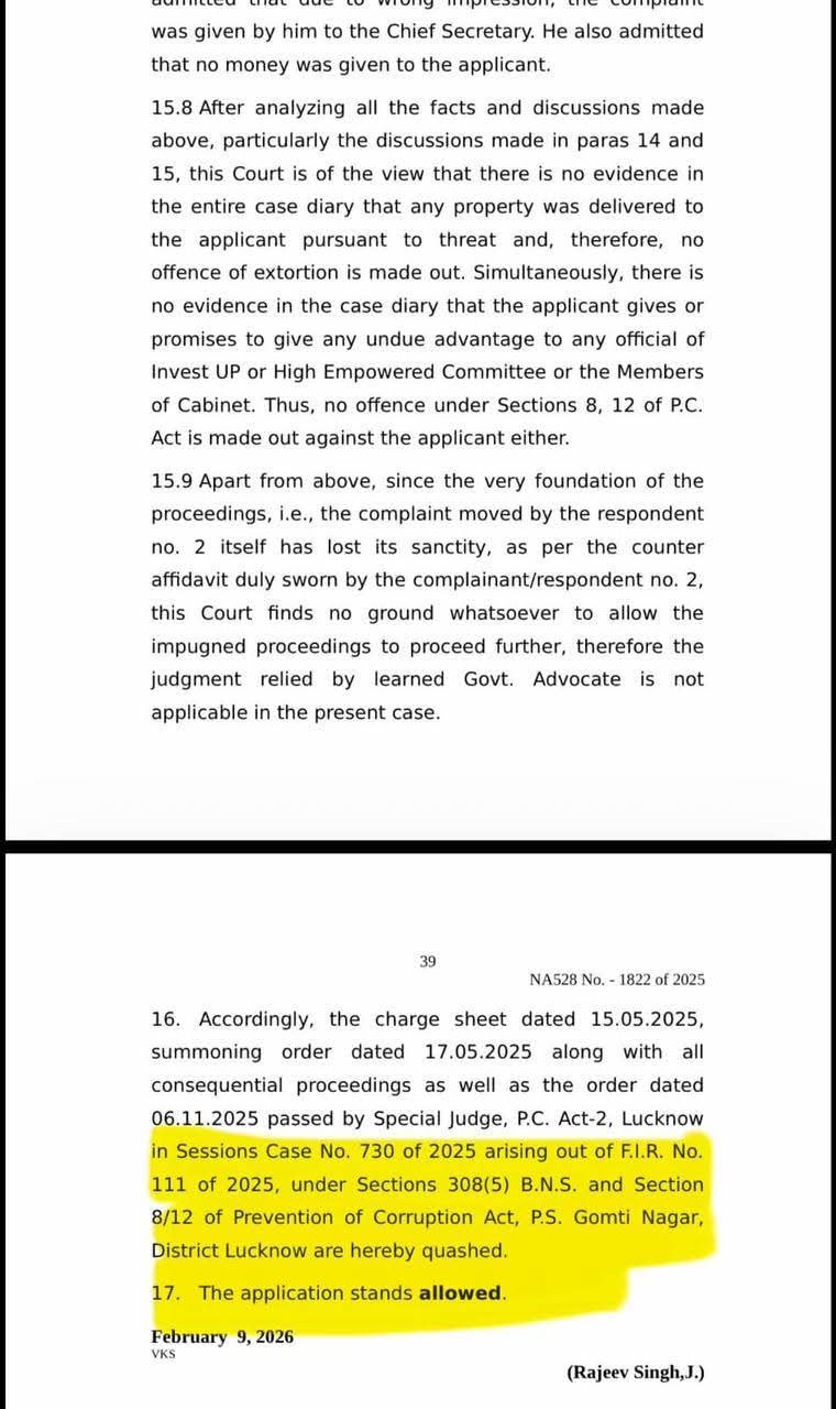 लखनऊ हाई कोर्ट ने उत्तर प्रदेश के चर्चित सोलर मैन्युफैक्चरिंग प्रोजेक्ट रिश्वत मामले में फैसला सुनाते हुए वरिष्ठ IAS अधिकारी अभिषेक प्रकाश और अन्य आरोपियों को बड़ी राहत दी है। कोर्ट ने इस मामले में दर्ज भ्रष्टाचार के केस और चार्जशीट को पूरी तरह रद्द कर दिया है।