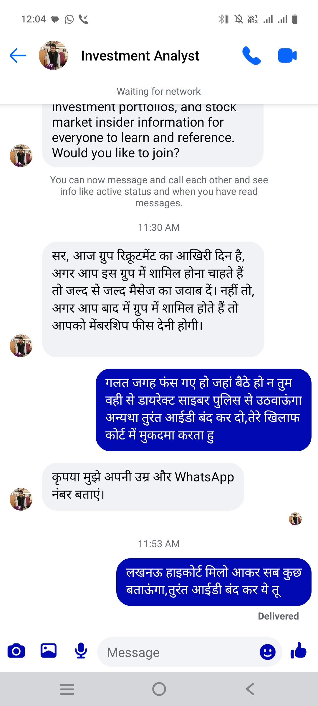 खबर नोएडा मीडिया से हैं यहां लाइव टाइम्स न्यूज चैनल पर कार्यरत वरिष्ठ पत्रकार संपादक राणा की फेक फेसबुक आईडी बनाई गई है जिस पर आज फेक फेसबुक यूजर ने दो मेसेज भेजे,जो की नीचे देख सकते हैं,मेसेज भेजे गए Media4samachar के (संपादक) राहुल मिश्रा को और आईडी यूजर लगातार पैसे की डिमांड कर रहा हैं