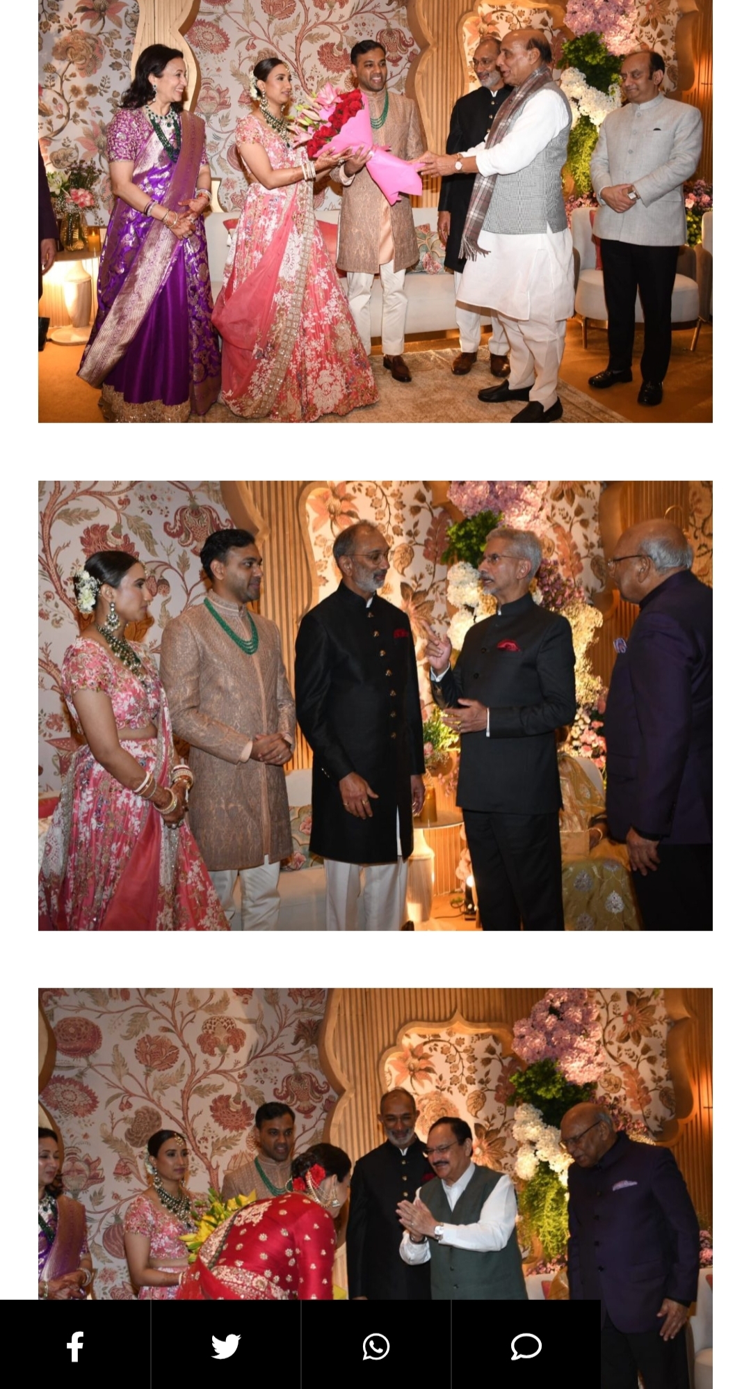 इस हाई-प्रोफाइल वैवाहिक आयोजन में भारतीय राजनीति के सबसे कद्दावर चेहरों ने शिरकत की। गृह मंत्री अमित शाह और रक्षा मंत्री राजनाथ सिंह ने वर-वधु से मिलकर उन्हें शुभकामनाएं दीं। इसके साथ ही विदेश मंत्री डॉ. एस. जयशंकर और केंद्रीय स्वास्थ्य मंत्री व भाजपा के राष्ट्रीय अध्यक्ष जेपी नड्डा भी इस खास मौके के साक्षी बने।