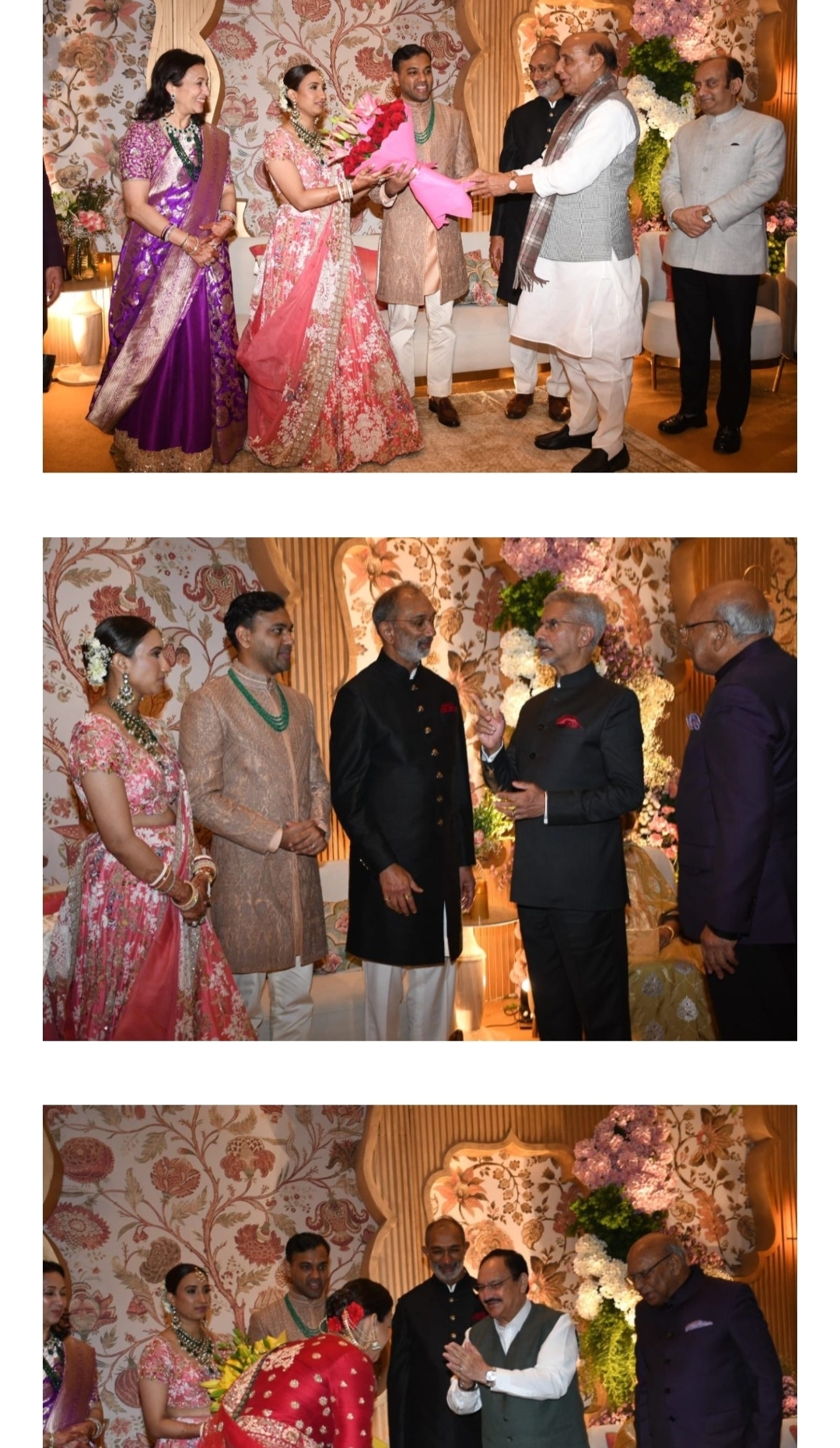 इस हाई-प्रोफाइल वैवाहिक आयोजन में भारतीय राजनीति के सबसे कद्दावर चेहरों ने शिरकत की। गृह मंत्री अमित शाह और रक्षा मंत्री राजनाथ सिंह ने वर-वधु से मिलकर उन्हें शुभकामनाएं दीं। इसके साथ ही विदेश मंत्री डॉ. एस. जयशंकर और केंद्रीय स्वास्थ्य मंत्री व भाजपा के राष्ट्रीय अध्यक्ष जेपी नड्डा भी इस खास मौके के साक्षी बने।