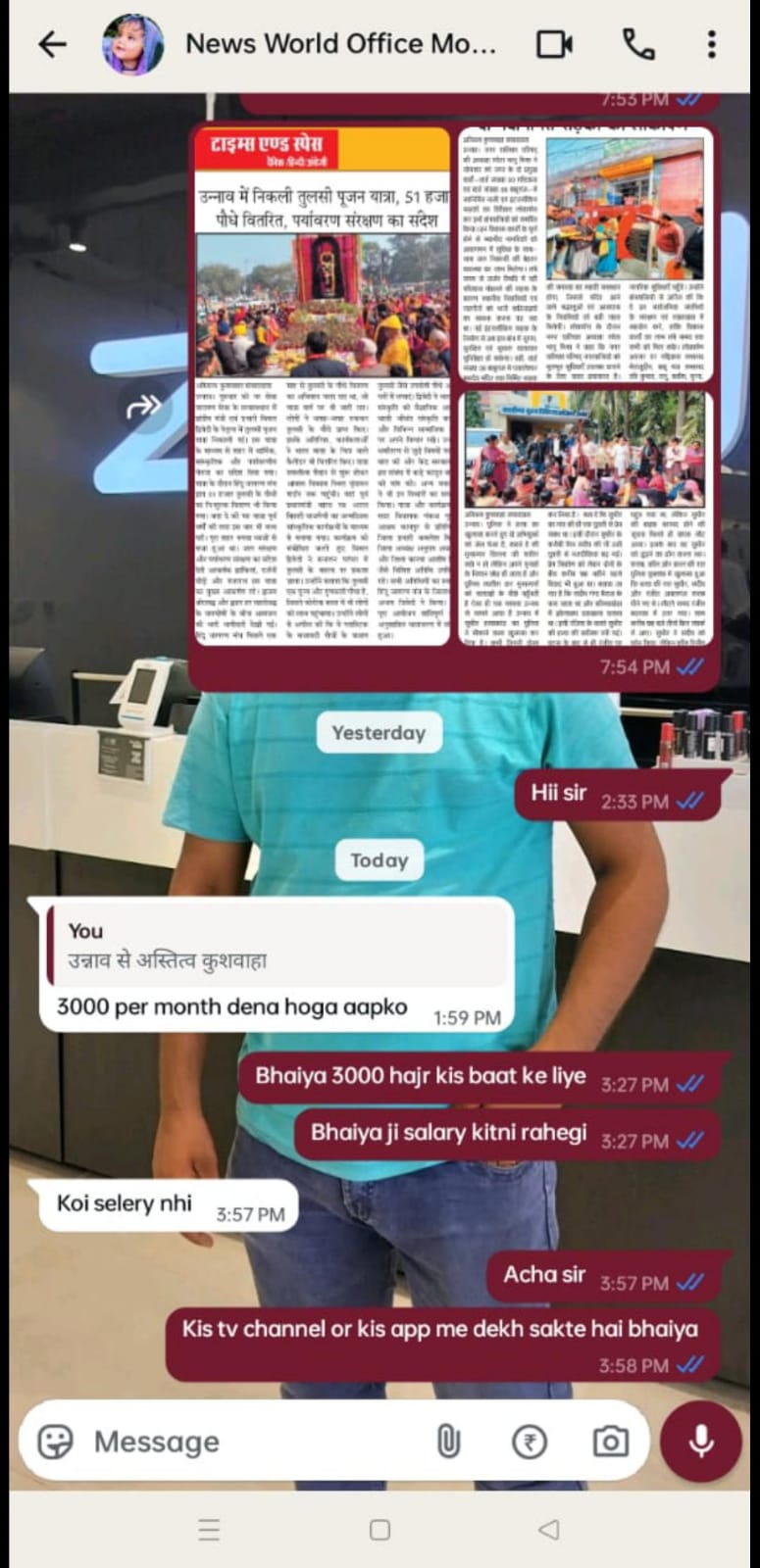 रिपोर्टर- रिपोर्टर ने लिखा भैया 3000 किस बात के लिए भैया जी सैलरी कितनी रहेगी।