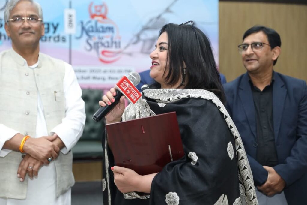 शारदा विश्वविद्यालय के शारदा स्कूल ऑफ़ मीडिया, फ़िल्म एंड एंटरटेनमेंट की डीन प्रो. (डॉ.) ऋतु सूद को मीडिया और समाज में उनके उत्कृष्ट योगदान के लिए प्रतिष्ठित ‘कलम के सिपाही अवॉर्ड’ से सम्मानित किया गया। यह सम्मान उन्हें उत्तराखंड के पूर्व मुख्यमंत्री श्री त्रिवेंद्र सिंह रावत द्वारा एक विशेष समारोह में प्रदान किया गया। इस गौरवशाली अवसर पर यह भी उल्लेखनीय रहा कि प्रो. (डॉ.) ऋतु सूद को इस प्रतिष्ठित अवॉर्ड के लिए न्यूज़पेपर असोसिएशन ऑफ़ इंडिया (NAI) द्वारा नामांकित किया गया था। यह नामांकन स्वयं इस बात का प्रमाण है कि मीडिया शिक्षा और फिल्म निर्माण के क्षेत्र में उनके योगदान को राष्ट्रीय स्तर पर सराहा जा रहा है।