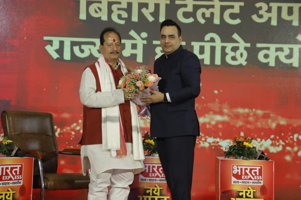 भारत एक्सप्रेस न्यूज नेटवर्क ने आज पटना में ‘नए भारत की बात, बिहार के साथ’ कॉन्क्लेव आयोजित किया. इस कॉन्क्लेव का उद्घाटन भारत एक्सप्रेस के चेयरमैन, मैनेजिंग डायरेक्टर एवं एडिटर इन चीफ उपेंद्र राय ने बिहार के डीजीपी विनय कुमार के साथ दीप प्रज्वलन कर किया. बिहार विधानसभा चुनाव 2025 से पूर्व यह मेगा इवेंट राजनीतिक, सामाजिक और मीडिया जगत के प्रमुख हस्तियों का समागम बना. कॉन्क्लेव की शुरुआत में चैनल के चेयरमैन, मैनेजिंग डायरेक्टर एवं एडिटर इन चीफ उपेंद्र राय ने सभी अतिथियों का हार्दिक स्वागत किया.