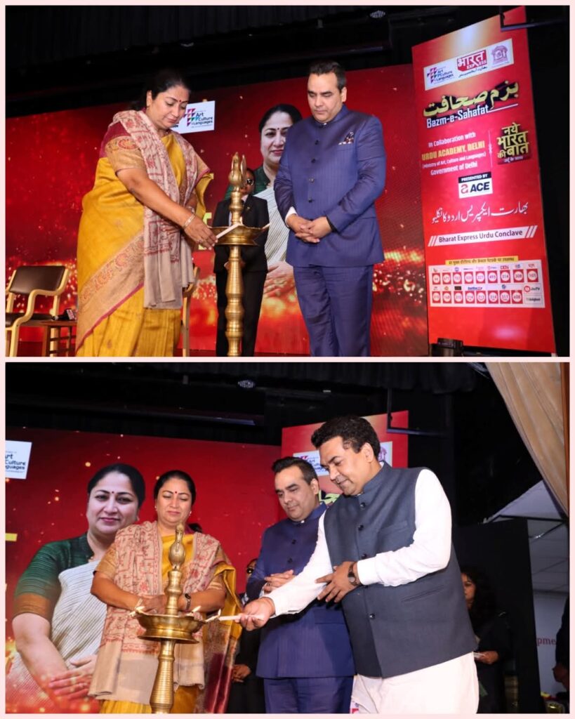बज्म-ए-सहाफत’ उर्दू कॉन्क्लेव में विशेष अतिथि के रूप में दिल्ली की मुख्यमंत्री रेखा गुप्ता, दिल्ली सरकार के मंत्री कपिल मिश्रा और भारत एक्सप्रेस के एडिटर-इन-चीफ और सीएमडी उपेंद्र राय ने शिरकत की. केंद्रीय मंत्री रामदास अठावले भी कार्यक्रम में शामिल हुए और उन्होंने अपने विचार रखे. इनके अलावा, बिहार में बड़ी जीत हासिल करने वाले बीजेपी नेता शाहनवाज हुसैन, प्रसिद्ध प्रोफेसर और पद्मश्री डॉ. अख्तर-उल-वासई, आईएएस ऑफिसर एवं आकांक्षा समिति की अध्यक्ष रश्मि सिंह, समेत बड़ी संख्या में पत्रकार, बुद्धिजीवी, लेखक, शिक्षक और उर्दू प्रेमी मौजूद रहे. इस कॉन्क्लेव का आयोजन संविधान दिवस के अवसर पर किया गया, जिसने इस आयोजन को और भी महत्वपूर्ण बना दिया.