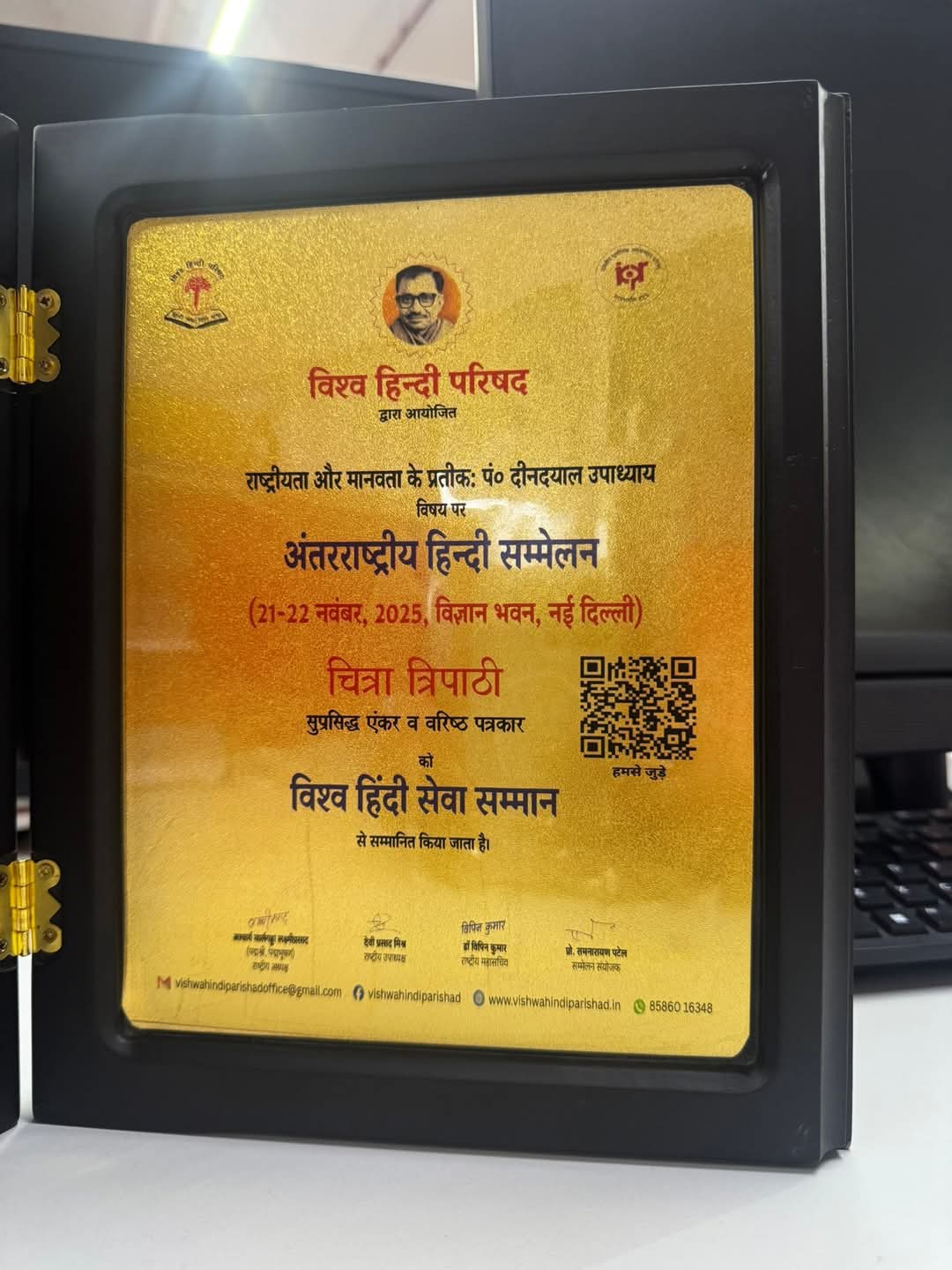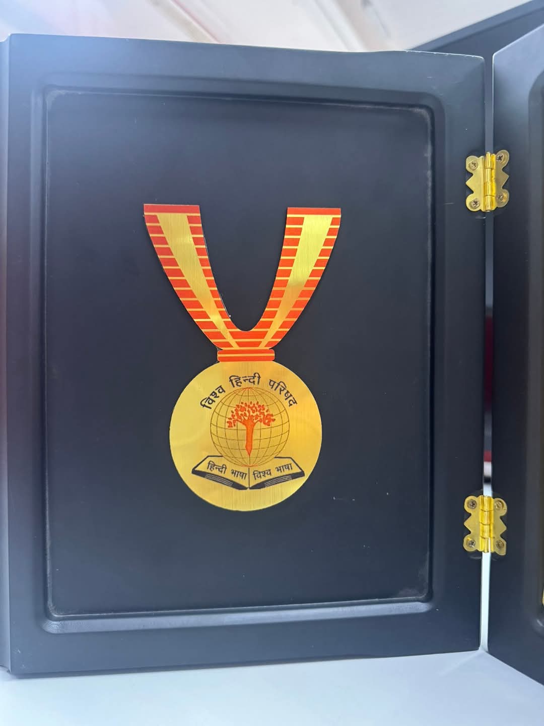 21-22 नवंबर 2025 को दिल्ली के विज्ञान भवन में आयोजित अंतरराष्ट्रीय हिंदी सम्मेलन में हिंदी सेवा सम्मान का आयोजन किया गया था. लेकिन अयोध्या में ध्वजारोहण कार्यक्रम में व्यस्तता की वजह से आज इसे प्राप्त करने का सौभाग्य मिला. हिन्दी भारत के जन-जन की भाषा बनने. उत्तर से दक्षिण और पूरब से पश्चिम के सेतू के रूप में विस्तार ले,
